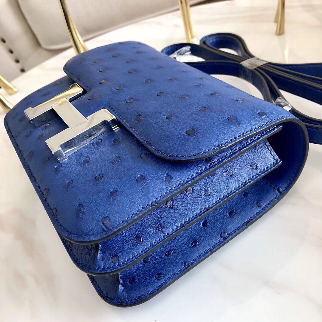 Hermes Constance 18 Handmade Bag In Blue Ostrich Leather JM349ni51