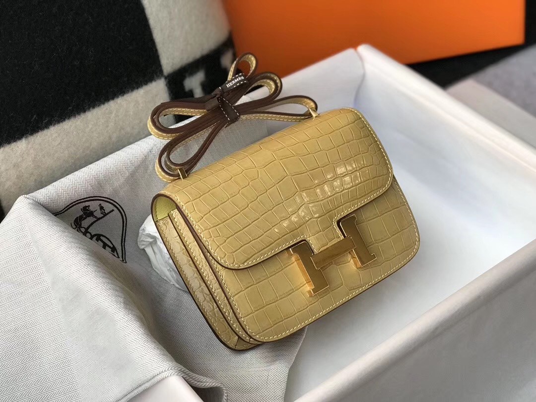 You are invited you to our Internet store Hermes Handbags to look through the full catalogue of top quality replica Hermes. Hermes Constance 18 Handmade Bag In Jaune Poussin Embossed Crocodile are crafted by expert factory. Hermes Handbags Replica prides itself on being unique and edgy, while also remaining classic and romantic to manufacture each product all the time.