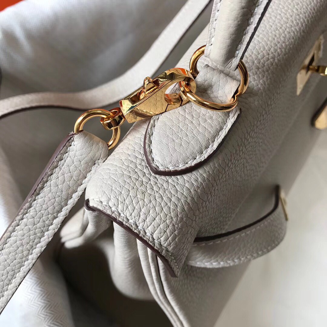 You're reviewing: New Hermes Kelly 32cm Bag In Pearl Grey Clemence Leather GHW JM1678Az83