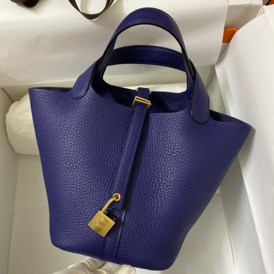 You're reviewing: Replica Hermes Picotin Lock 18 Handmade Bag in Blue Encre Clemence Leather JM710PU57